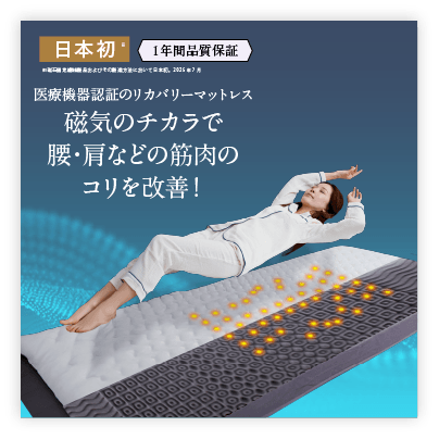 筋肉のコリの改善・血行促進と体圧分散・反発力・通気性を組み合わたあたらしいマットレスです。